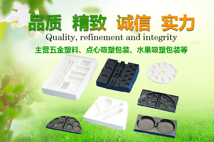 主營產(chǎn)品:電子五金吸塑、點(diǎn)心吸塑包裝、水果吸塑包裝、醫(yī)藥吸塑包裝、化妝品植絨吸塑